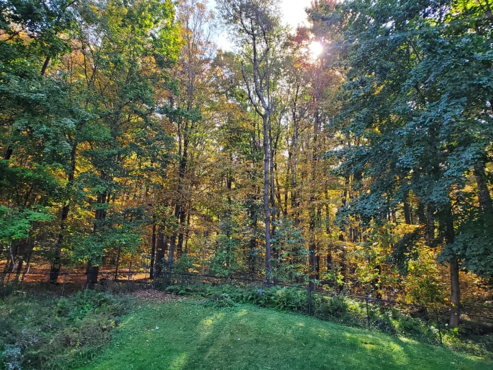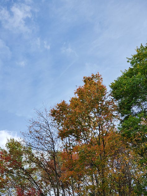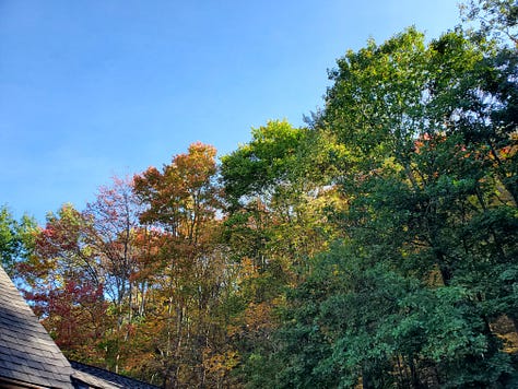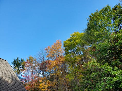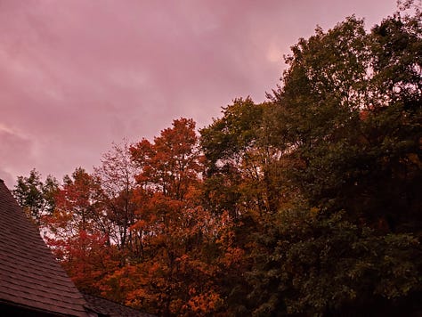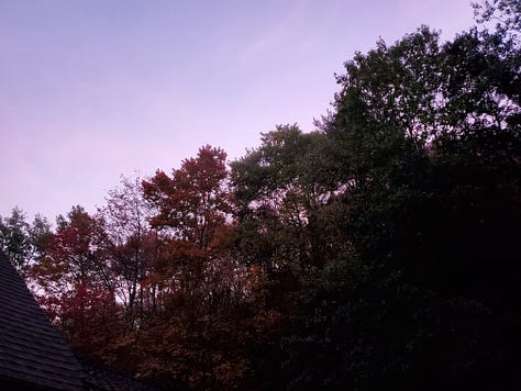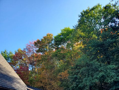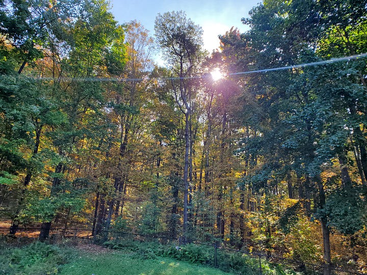 The sunlight coming through the trees as the leaves change in the woods behind our house has been a literal bright spot in my days.